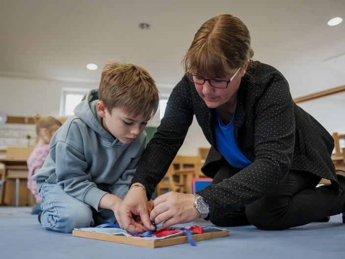 Die Pädagogik nach Maria Montessori orientiert sich unmittelbar am Kind mit seinem Bedürfnis nach spontaner Aktivität und Selbstbestimmung sowie seinem Streben nach Unabhängigkeit. Dem leisten wir Folge, indem die Kinder in einer Umgebung arbeiten, die auf ihre Bedürfnisse und Fähigkeiten zugeschnitten ist.